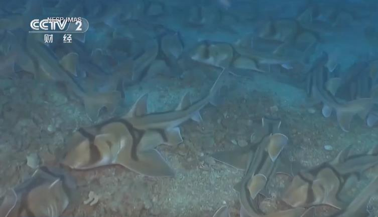 ·科学家观测到成群澳大利亚虎鲨在海底睡觉。