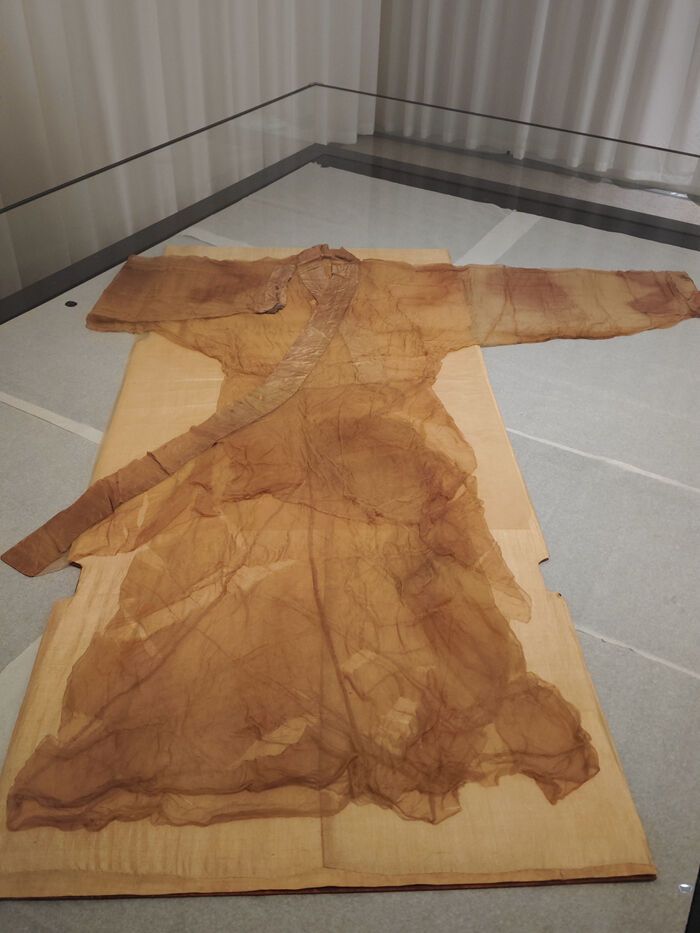 事实上,被盗走的那件素纱襌衣正是现在更为大家熟知的、在常设展厅中展出的直裾素纱襌衣。在被追回后,因为保存得相对完好,它经过修复对外展出。