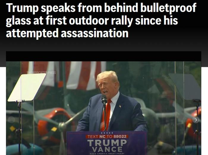 ·站在防弹玻璃后,特朗普举行暗杀未遂后首场户外活动。