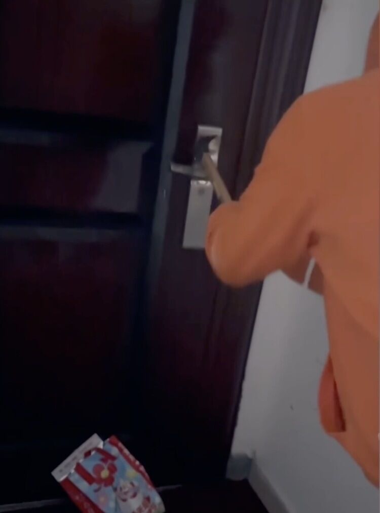 4月17日,我们前往湖南省中北部某县城的占奕家。这是个普通的小区,绿树成荫,占奕住13楼,一个白色的摄像头正对着电梯口。出电梯往左拐,就是占奕的家,暗红色的大门被砸得坑坑洼洼,门锁刚换了新。屋里依旧没有人,门口的鞋柜也被清空了。