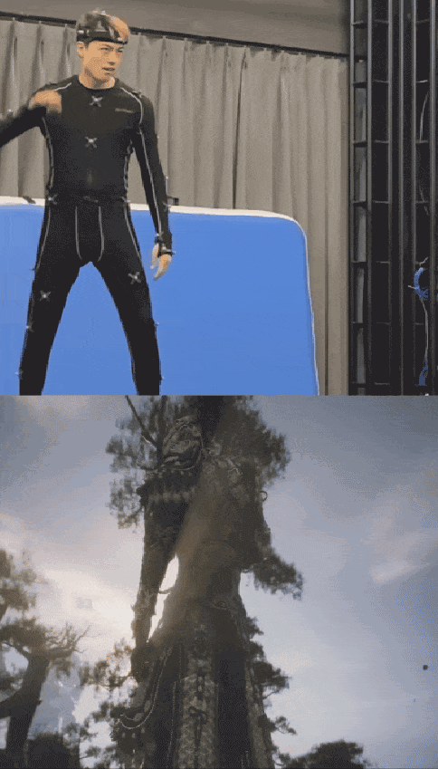 在《黑神话:悟空》中,来自山东淄博的小伙殷凯承担了游戏主角“天命人”的大部分动捕工作。殷凯穿着动捕服,并在身上贴上反光点,由多个摄像机进行360度的拍摄录制,把人的动作捕捉成虚拟数据套到虚拟模型上,经过精修等一系列工作后最终在游戏中呈现。
