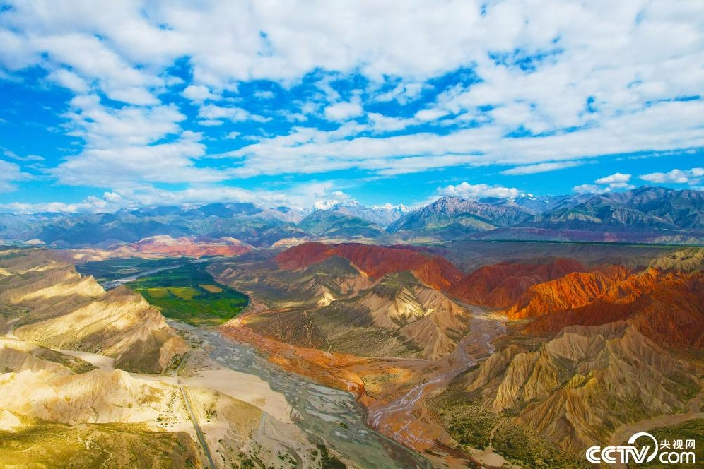在天山托木尔景区博孜墩,克其克库孜巴依能代尔河从多彩的山体中流过,像极了一幅色彩斑斓的油画。
