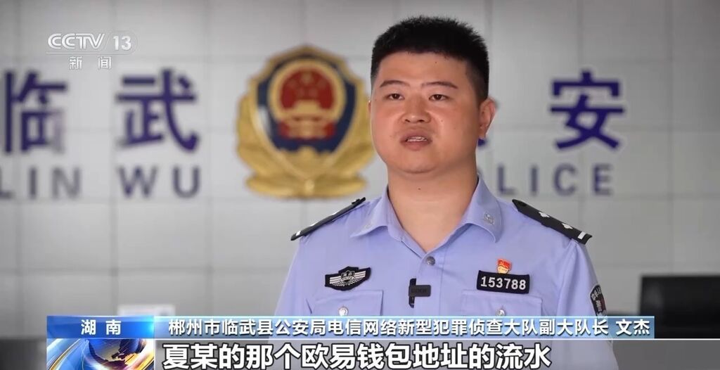 郴州市临武县公安局电信网络新型犯罪侦查大队副大队长 文杰:我们核算出夏某的欧易钱包地址的流水有900多万元,将近1000万元,他的流水是专门给号商结算提成的。