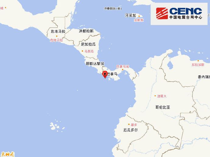 央视网消息:据@中国地震台网速报 微博消息,中国地震台网正式测定:08月26日13时08分在巴拿马以南(北纬7.50度,西经82.40度)发生5.8级地震,震源深度20千米。