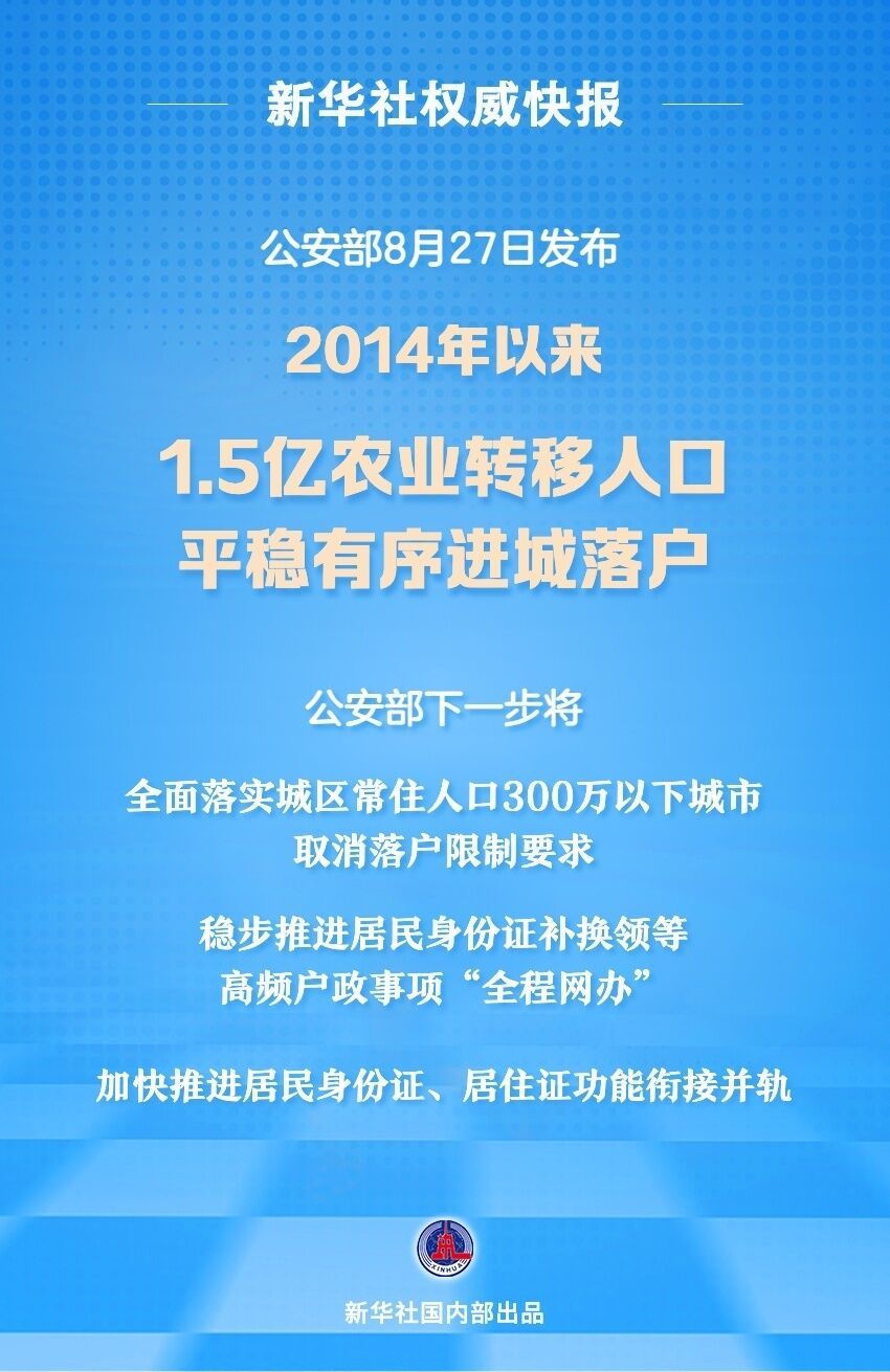 2014年以来共有1.5亿农业转移人口平稳有序进城落户