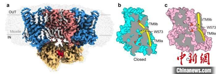 姜道华表示,他们的研究发现了XPR1的结构类似于转运蛋白,但是采取一种新颖的类似于通道的门控机制外排磷酸根,显著不同于绝大多数转运蛋白采用的交替开放的转运机制。