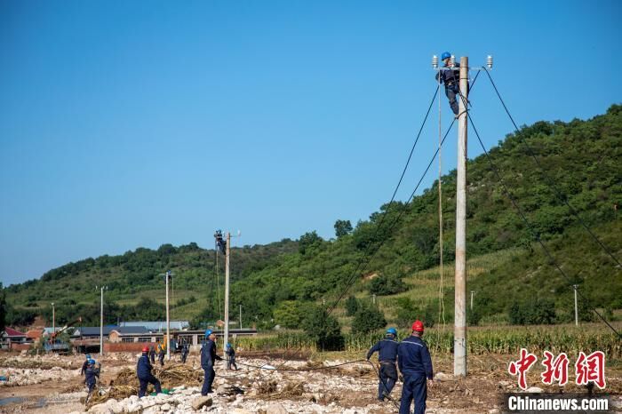 为确保抢修作业安全、顺利进行,国网沈阳供电公司抗洪抢险保电支援团队科学制定抢修方案,从杨树底下村北侧翻越山地和河道架杆架线,组立43基电杆,架设超过2000米导线。