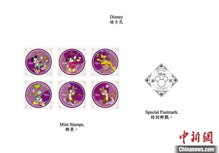 香港邮政表示,迪士尼动画人物陪伴了一代又一代人的成长,给人们带来快乐和感动。香港邮政与迪士尼合作,以“迪士尼”为题发行一套六枚邮票、三款邮票小型张及相关集邮品,将大众熟悉且喜爱的经典动画人物带到邮票上。邮票设计更融入本地传统元素,突显香港作为中外文化艺术交流中心的独特魅力。