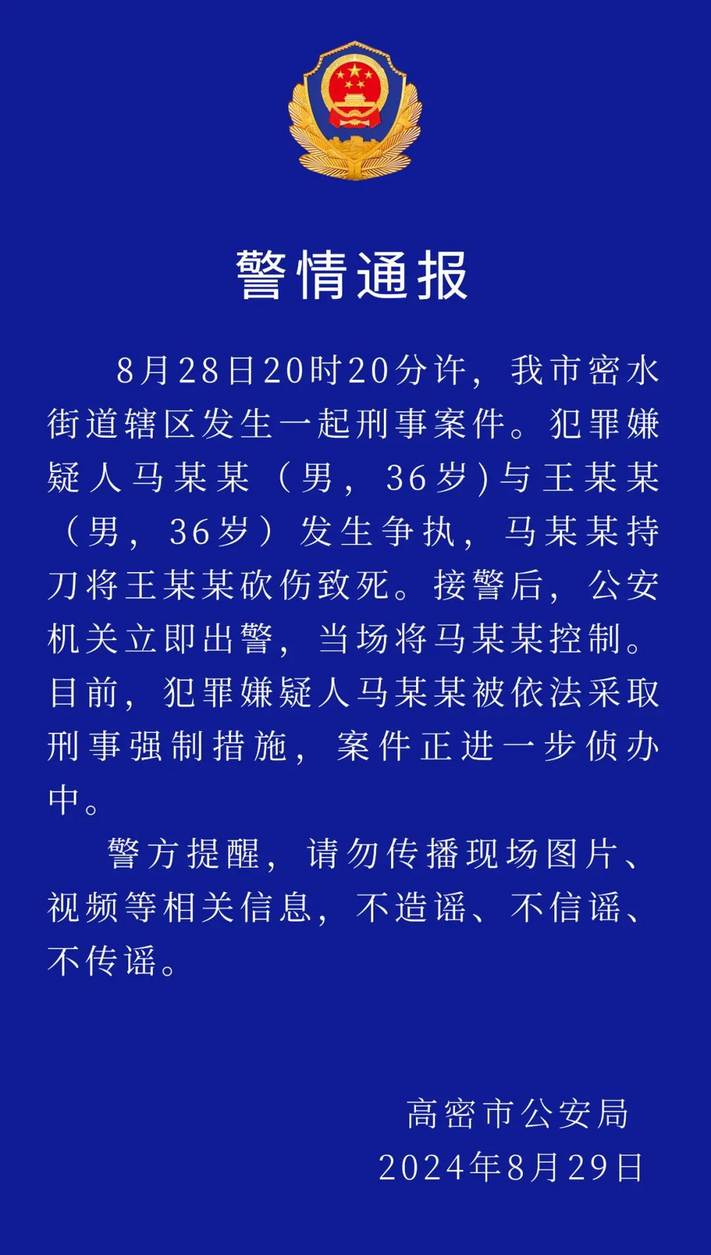 ·山东高密一男子被当街砍伤致死,警方对嫌疑人采取刑事强制措施。
