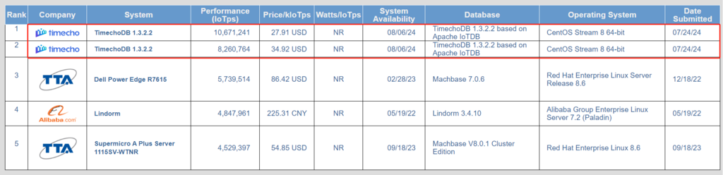 8月30日,在有关国际组织公布的最新的国际权威数据库性能基准榜单中,基于清华发起研制的Apache IoTDB开发的国产化时序数据库软件TimechoDB刷新了物联网场景榜单TPCx-IoT,在性能和系统成本维度上双双打破世界纪录。相比第二名,其性能指标提高86%,系统成本降低68%,超过美国戴尔、超威、韩国TTA等知名公司相关产品。