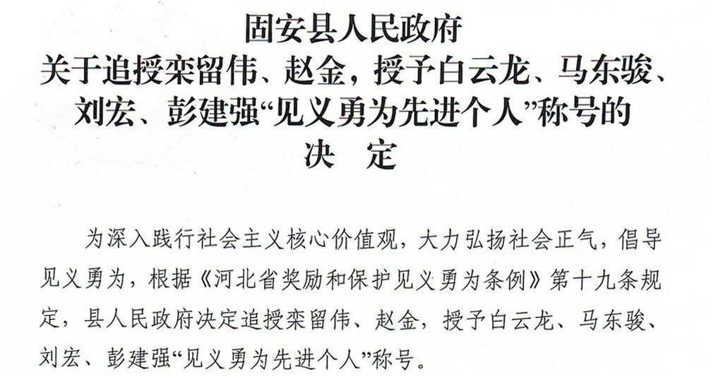 固安县人民政府决定