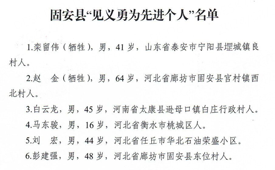 栾留伟、赵金等6人不顾个人安危