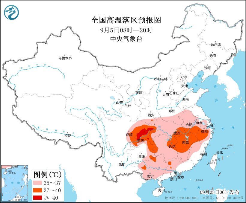 央视网消息:中央气象台9月5日06时继续发布高温黄色预警。预计9月5日白天,陕西南部、河南南部、安徽、浙江、湖北、湖南、江西、福建西北部、四川中东部、重庆、贵州东部、广西、广东西北部等地有35~36℃高温天气,其中,安徽南部、浙江西部、湖北西南部和东部、湖南西部和东北部、江西中北部、四川东部、重庆、贵州东北部、广西北部等地部分地区最高气温37~39℃,四川东部、重庆西部和北部局地可达40℃以上。