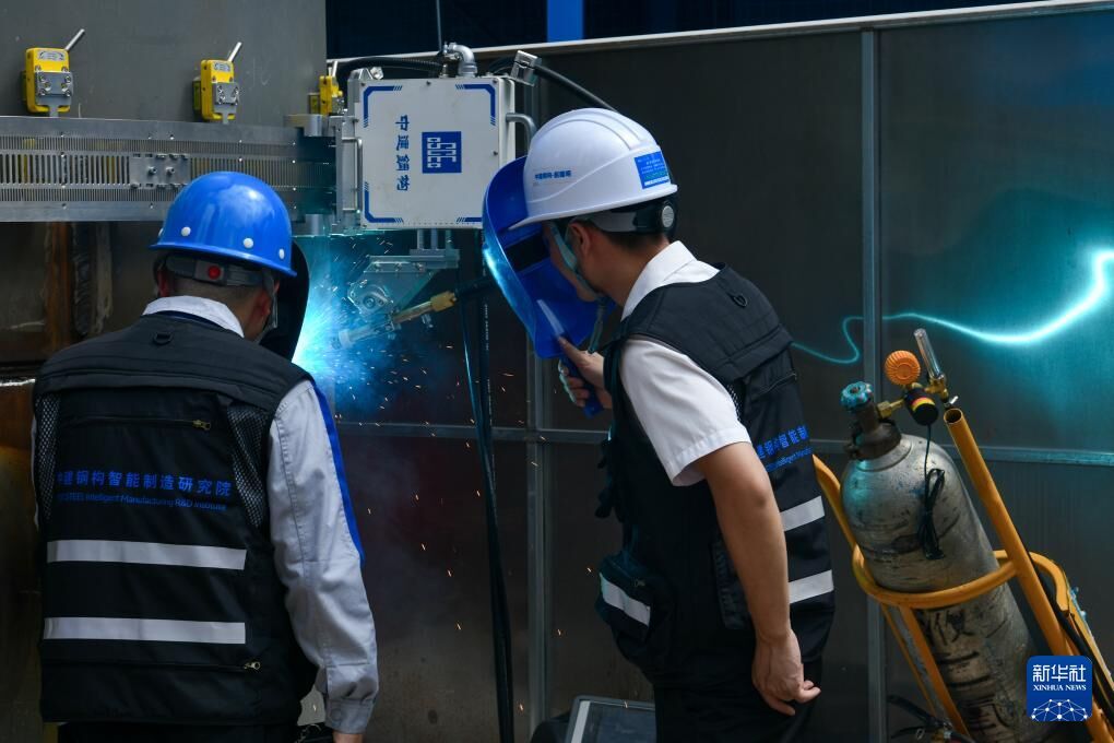 9月5日,10台智能焊接机器人在深圳湾超级总部基地C塔项目建设现场正式投入使用。本次投用的柔性焊接机器人由中国建筑自行研发,承担项目东塔10根直径2.5米外框钢柱、约7000吨钢构件的现场焊接任务。