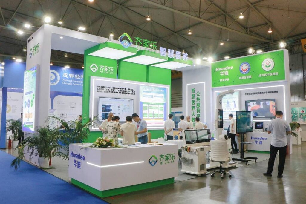 在医疗信息化展区,华迪信息·齐家乐展台以其前沿的医疗信息化、智慧医养建设方案吸引了众多目光,成为展会的一大亮点。