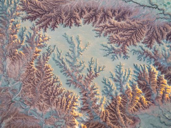 近日,内蒙古阿拉善梦幻大峡谷在夕阳的映衬下,山体流光溢彩,如七色哈达环绕,如梦如幻。