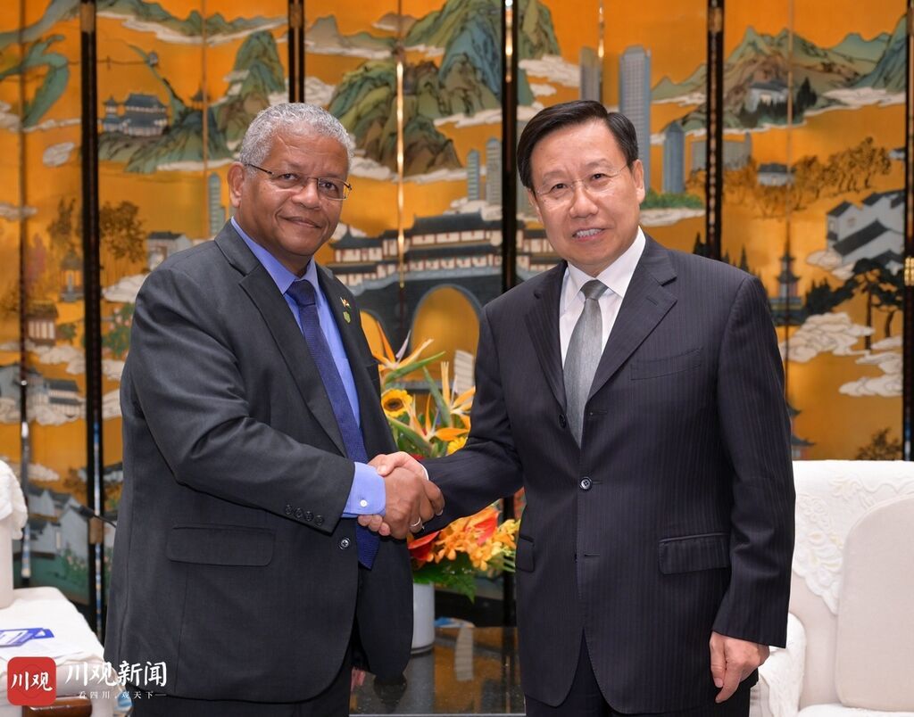 拉姆卡拉旺对四川经济社会发展取得的成就表示钦佩。他说,塞中传统友谊深厚,两国关系根深叶茂。塞方视中方为重要合作伙伴,也高度重视与四川的交流交往,十分看好双方合作前景。我们愿积极推动塞舌尔与四川拓展合作领域、深化合作层次,期待成都至塞舌尔直航早日开通,以更多互利共赢硕果更好造福两地人民。