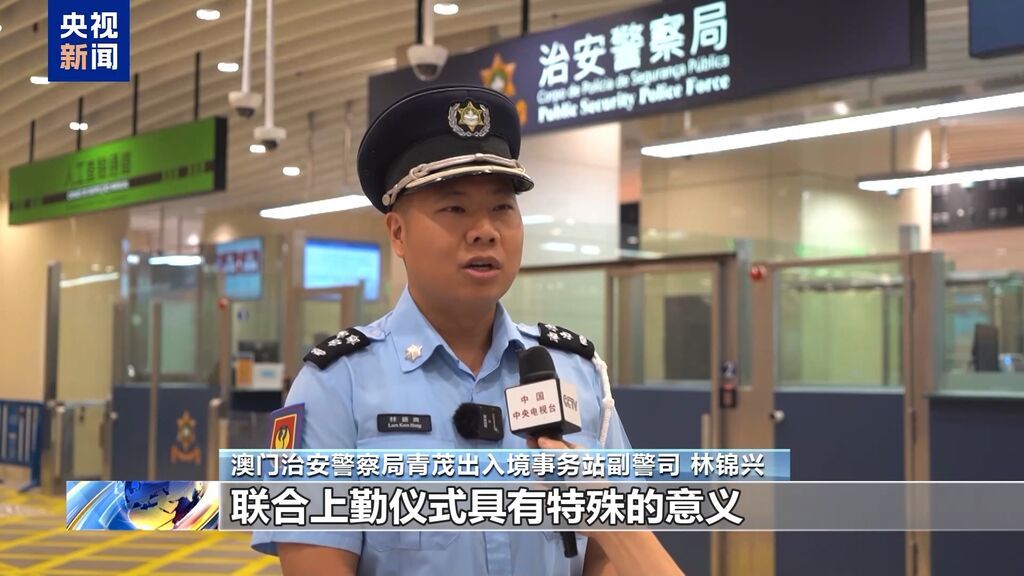 澳门治安警察局青茂出入境事务站副警司 林锦兴:在青茂口岸开通三周年之际,珠澳双方警员一起举行联合上勤仪式具有特殊的意义。我们会一如既往,精诚合作,不断提升广大出入境旅客通关效率和通关体验,助力青茂口岸发挥更大的效用,为粤港澳大湾区融合发展而努力。
