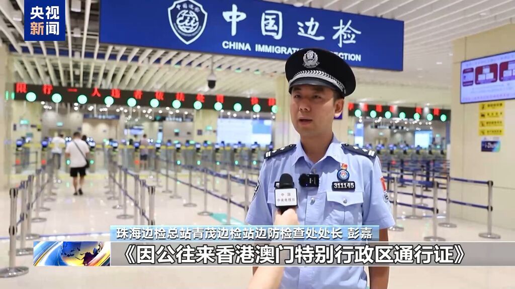 珠海边检总站青茂边检站边防检查处处长 彭嘉:从即日起允许持《因公往来香港澳门特别行政区通行证》人员从青茂口岸通行。未来,我们也会加强与澳门治安警察局执法合作,继续助力粤港澳大湾区融合发展。