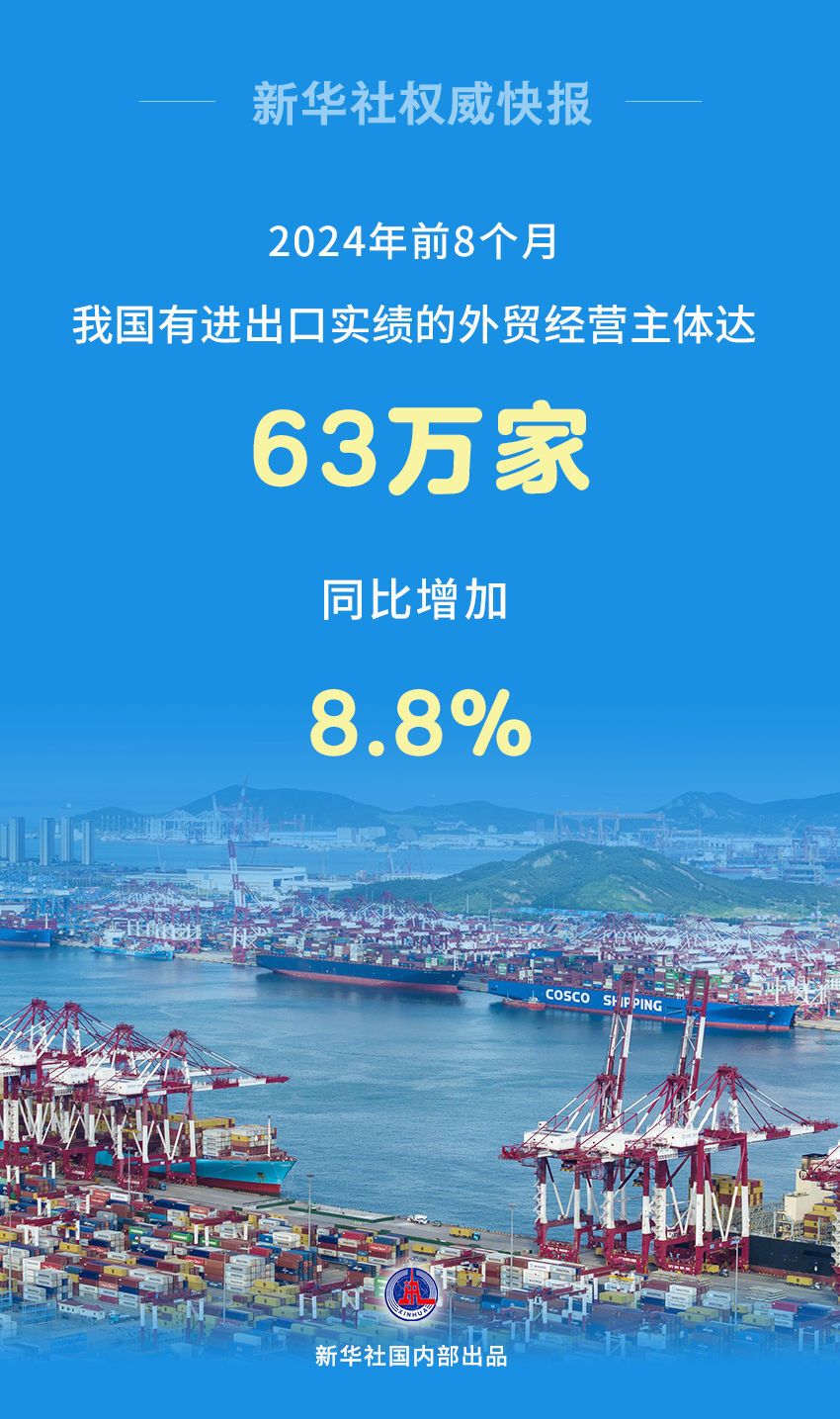 海关总署发布2024年前8个月外贸数据