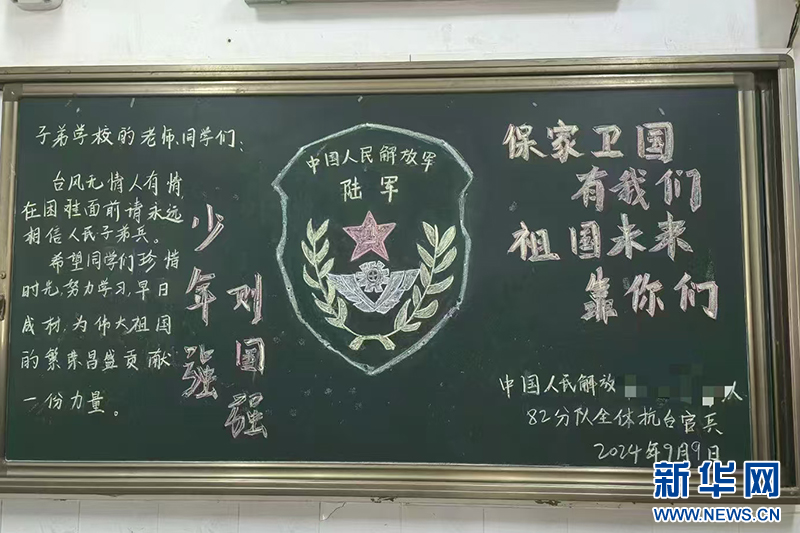 在今年第11号超强台风“摩羯”的肆虐下,海口、文昌等多地学校及基础设施受损严重。近日,参与台风救援的解放军官兵圆满完成了对某学校的灾后援助任务,在离别之际,官兵们留下板报,寄语学子。