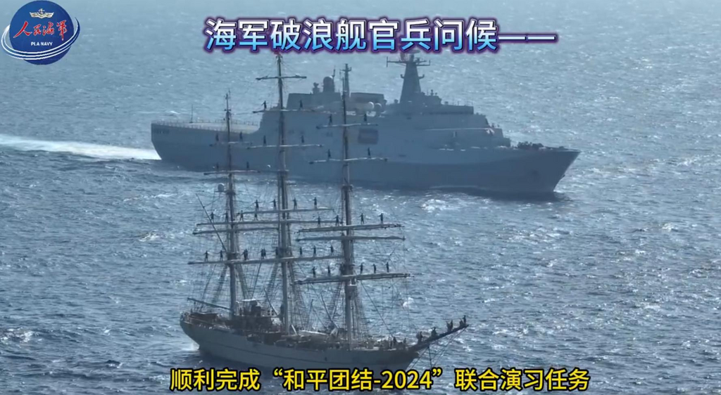 9月9日,正在执行远海实习访问任务的海军破浪舰,在驶向第一站越南的航程中,“偶遇”顺利完成“和平团结-2024”联合演习任务的海军五指山舰、祁连山舰和合肥舰编队返航,双方任务官兵展开了一段暖心对话。