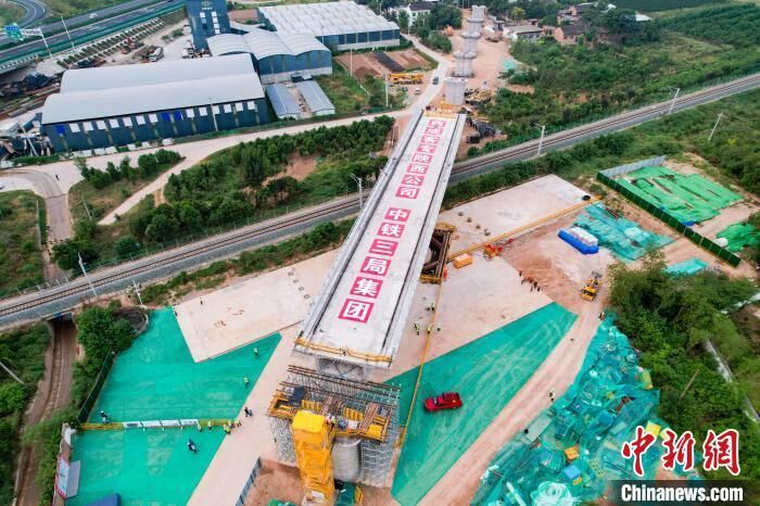 中新网西安9月11日电 (李一璠 张伟 樊钰麟)11日,由西成客专陕西公司建设、中铁三局施工的西延高铁跨省道107立交特大桥连续梁成功转体,实现空中精准对接,为后续工程建设开展奠定坚实基础。