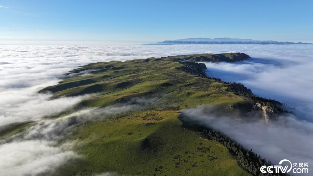 11日,甘肃张掖,祁连山国家公园甘肃片区的山丹马场境内云雾缭绕。山川和奔涌的云海交相辉映,如梦如幻,恍如仙境。