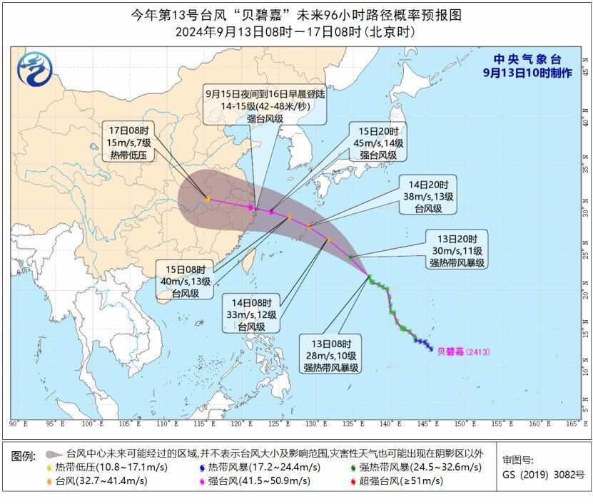 中新网9月13日电 据中央气象台网站消息,中央气象台9月13日10时发布台风蓝色预警。