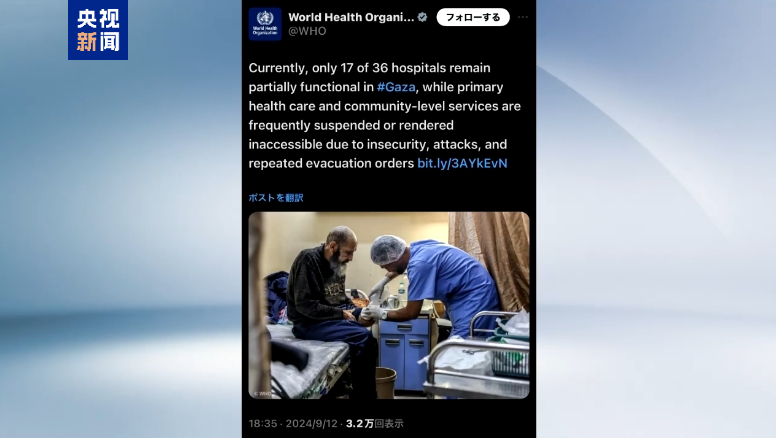 世界卫生组织当地时间12日发表声明称,持续的巴以冲突摧毁了加沙地带的卫生系统。目前加沙地带36家医院中只有17家还在保持有限的运作。世界卫生组织称,不安全的环境、袭击以及一再下达的疏散令,导致当地基础医疗和社区级别的医疗服务频繁中断,甚至无法提供。