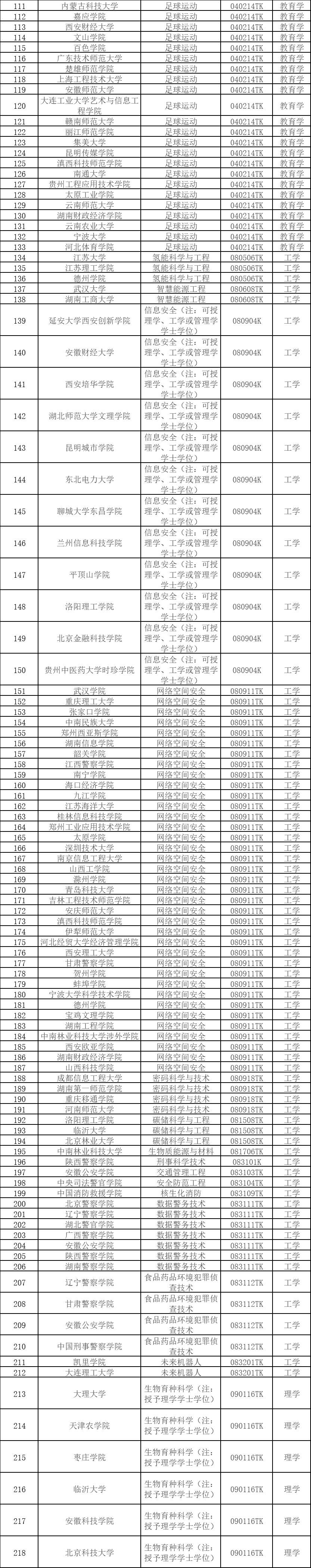从申报的专业类型来看,2024年度共申报176种专业。其中,申报数量前五名的专业依次为:足球运动(39个)、网络空间安全(37个)、运动训练(34 个)、健康与医疗保障(17个)、老年医学与健康(14个)。