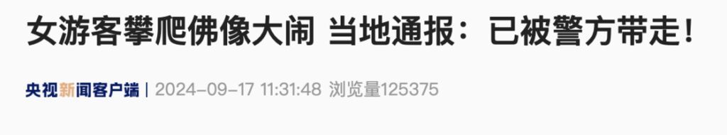 9月15日,应县融媒发布了应县木塔管理中心《关于女性游客攀爬佛像事件的情况说明》。