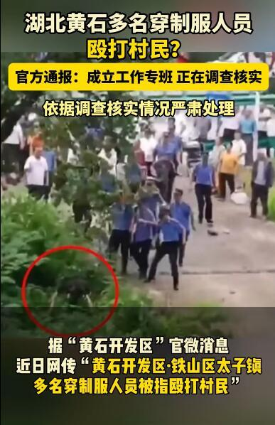 ·湖北黄石多名穿制服人员殴打村民?官方:正调查核实。