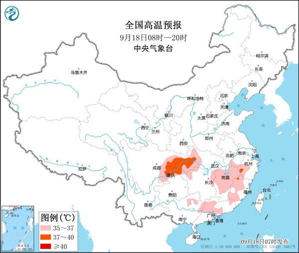气温方面,今明两天,南方高温范围还会继续扩大,到后天,四川盆地到湖北大部、湖南东部、江西、浙江西部、福建西部和北部、广西中北部、广东中北部等地都会迎来高温,并且重庆的最高气温会再度升至40℃。