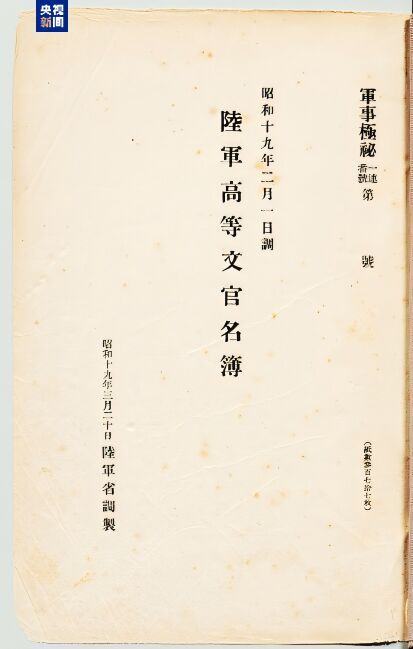 在“九一八”事变93周年纪念日来临之际,侵华日军第七三一部队罪证陈列馆与日本学者松野诚也联合发布了一份最新发现的史料文献《陆军高等文官名簿 陆军书记官 陆军技师》。