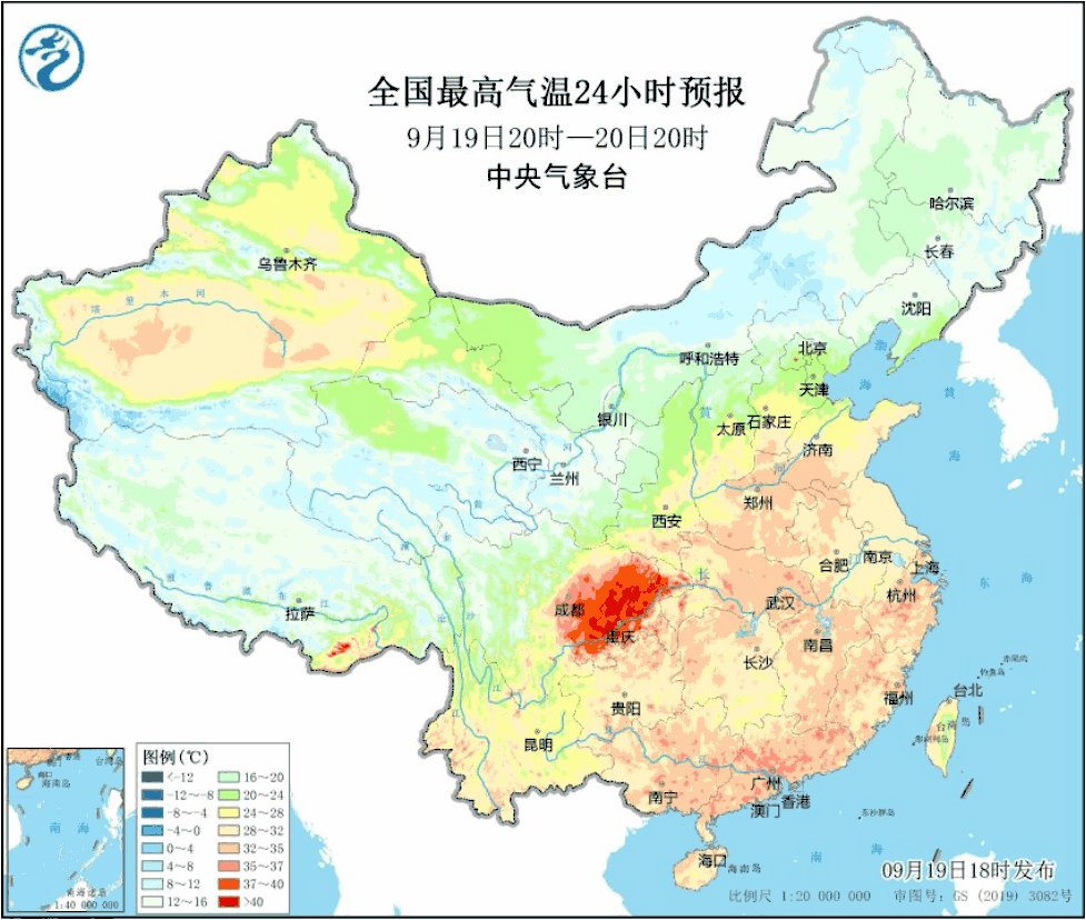 中秋节过后,在四川盆地东部南部,气温掀起又一浪高潮。9月19日,全省日最高气温出现在15时的渠县,为40.2℃;全省高温排行榜前十位的气象站所在地,都像高坪一样,走出了比前一日更高的气温变化曲线。