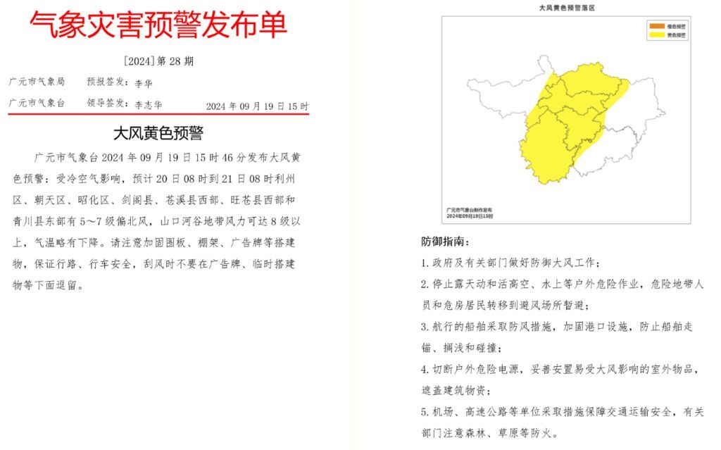 目前,广元市气象台已发布大风黄色预警。请相关地区人员注意防范。