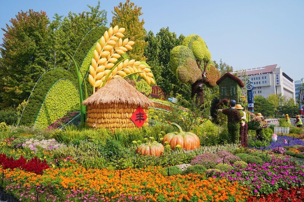 18米高花篮体现“蔬果飘香,繁花似锦”