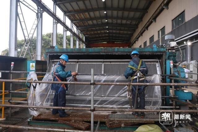 天色已晚,但在浙能嘉兴发电厂里,仍有不少戴着安全帽的人员三三两两聚在一起,旋转滤网前的抓海蜇工作仍没有停止。
