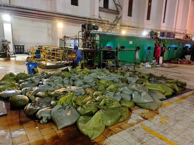 这几天,电厂里日夜有技术人员24小时驻守,清理海蜇人员三班倒,每班8个小时,每天都有四百袋至1千袋的海蜇被清理出厂。