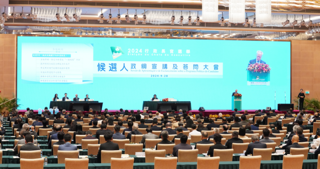 澳门特区第六任行政长官选举的候选人政纲宣讲及答问大会28日在中国与葡语国家商贸合作服务平台综合体举行。
