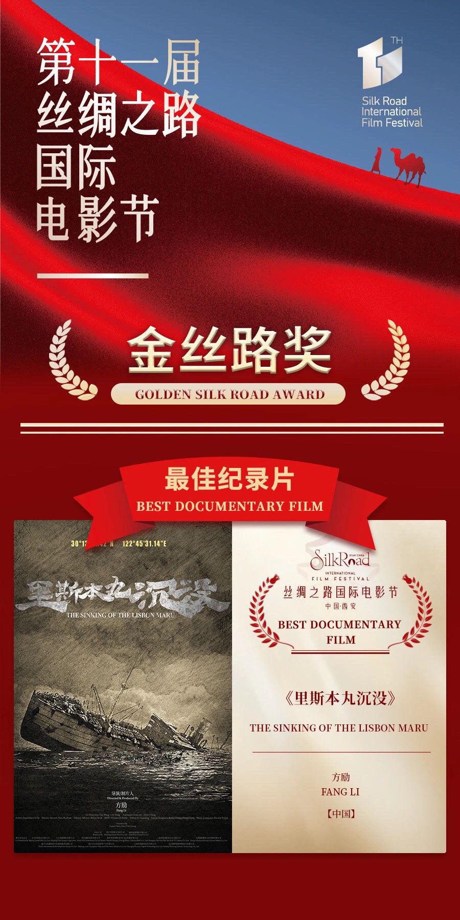 9月25日,第十一届丝绸之路国际电影节颁奖典礼在西安举行,《里斯本丸沉没》获得“金丝路奖”最佳纪录片奖。颁奖词称赞道:“导演方励倾尽所有,为还原一个被掩埋八十二年的真相。影片铭刻了那些在海底失去生命的灵魂,更赋予了沉默以震撼的力量,触动人心。其中所展现的对真实、真相的追求与坚持让人动容。”