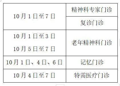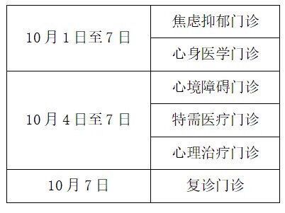 10月1日停诊,10月2日至3日上午开诊,10月4日至7日全天开诊。