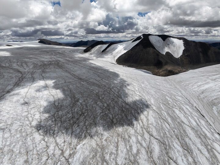 我国科学家探明:普若岗日冰原是青藏高原上最厚的冰川。这是位于西藏那曲市双湖县的普若岗日冰原10号冰川(无人机照片)。