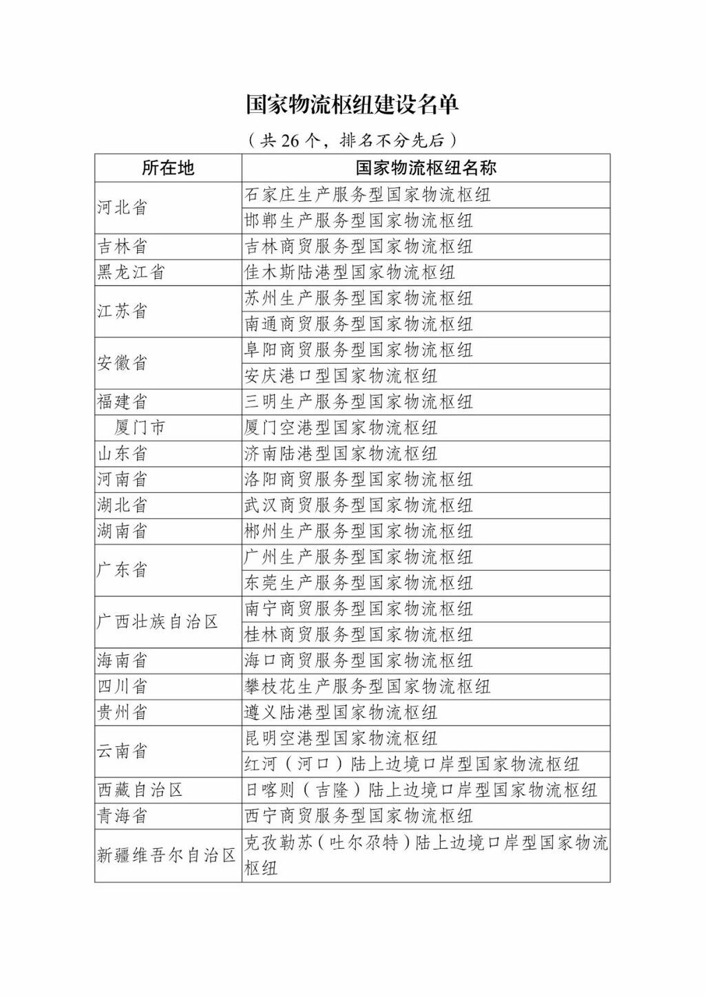中新网10月2日电 据国家发展改革委微信公众号消息,为深入贯彻党的二十大精神,落实“十四五”规划《纲要》和《“十四五”现代物流发展规划》等有关工作部署,近日国家发展改革委研究确定并发布新一批国家物流枢纽建设名单,石家庄生产服务型、武汉商贸服务型、攀枝花生产服务型等26个国家物流枢纽入选。其中,从地区分布看,东部地区10个、中部地区5个、西部地区9个、东北地区2个;从枢纽类型看,陆港型3个、空港型2个、港口型1个、生产服务型8个、商贸服务型9个、陆上边境口岸型3个。
