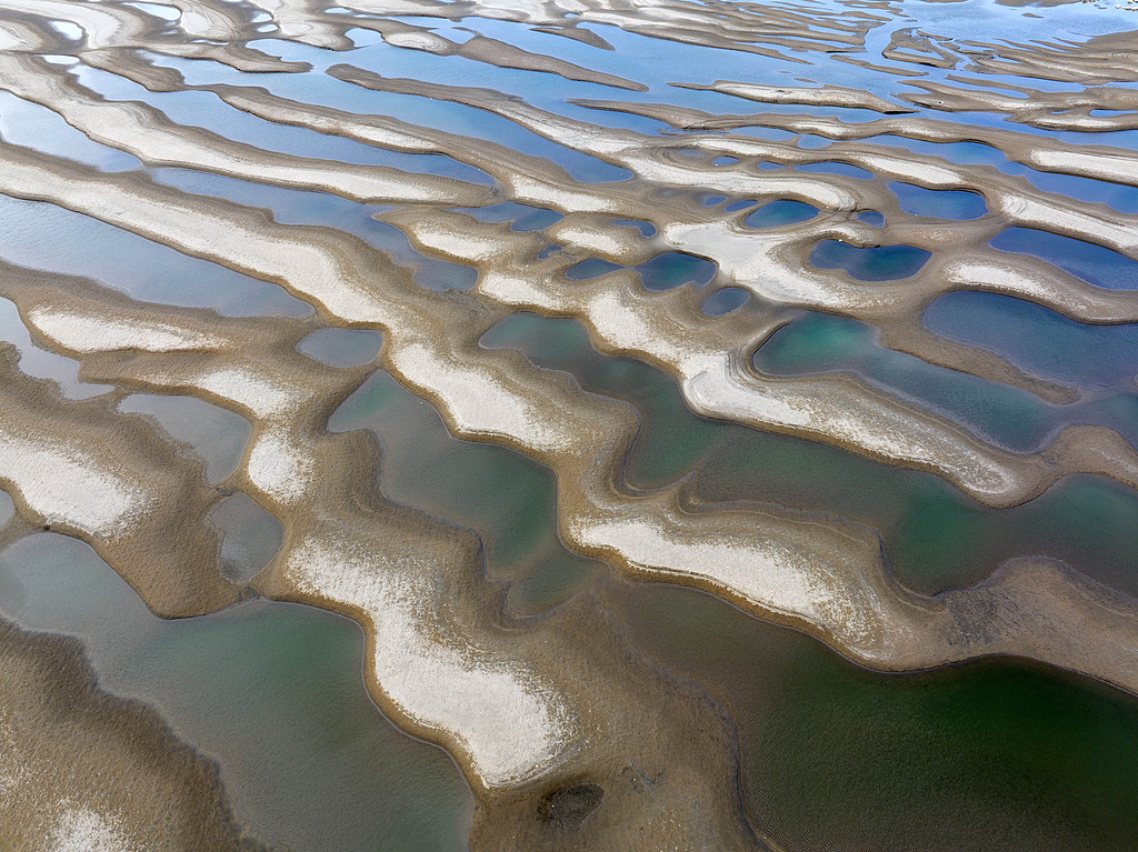 湖北荆州:长江进入枯水季,滩涂宛若“翡翠湖”。