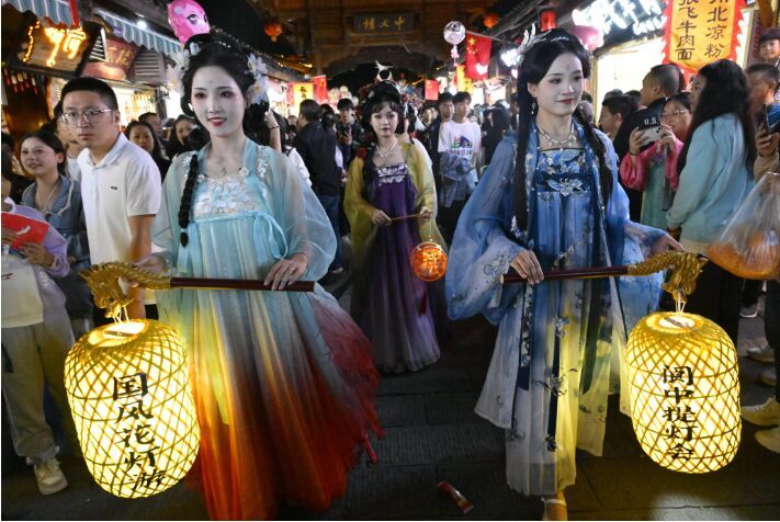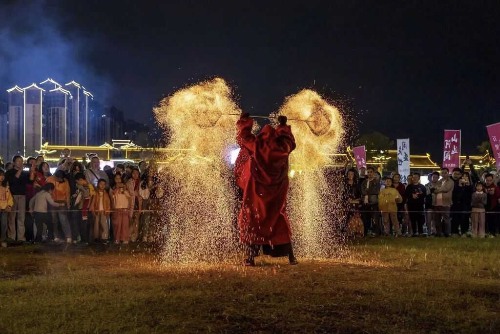 丰富多彩的夜游体验,让热闹从白天延续到夜间,眉山市东坡区乐享岛潮玩集市,以集装箱为主题,推出多个好吃、好玩、好看的项目,尤其是火壶非遗表演震撼上演吸引大批游客。在阆中,为满足游客需求,《客来阆中》每晚演出三场,《蜀道盛世》每晚演出两场,“赏古城灯光展示、看阆苑仙境实景演出、品嘉陵江夜景风情”三大文化旅游产品提升夜游体验,阆中的“夜”文章丰富多彩。在绵阳江油李白故居·青莲文旅度假区,举办独具特色的“动感虫舞灯会”活动,各种昆虫造型的艺术彩灯令人眼前一亮,融合汉服快闪演绎等,为游客们带来特别的视觉体验。