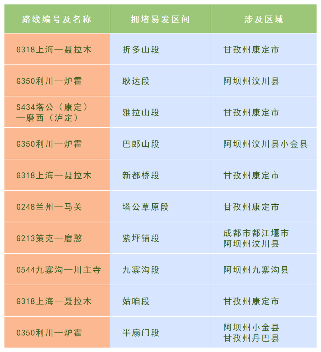 普通国省干线拥堵易发路段