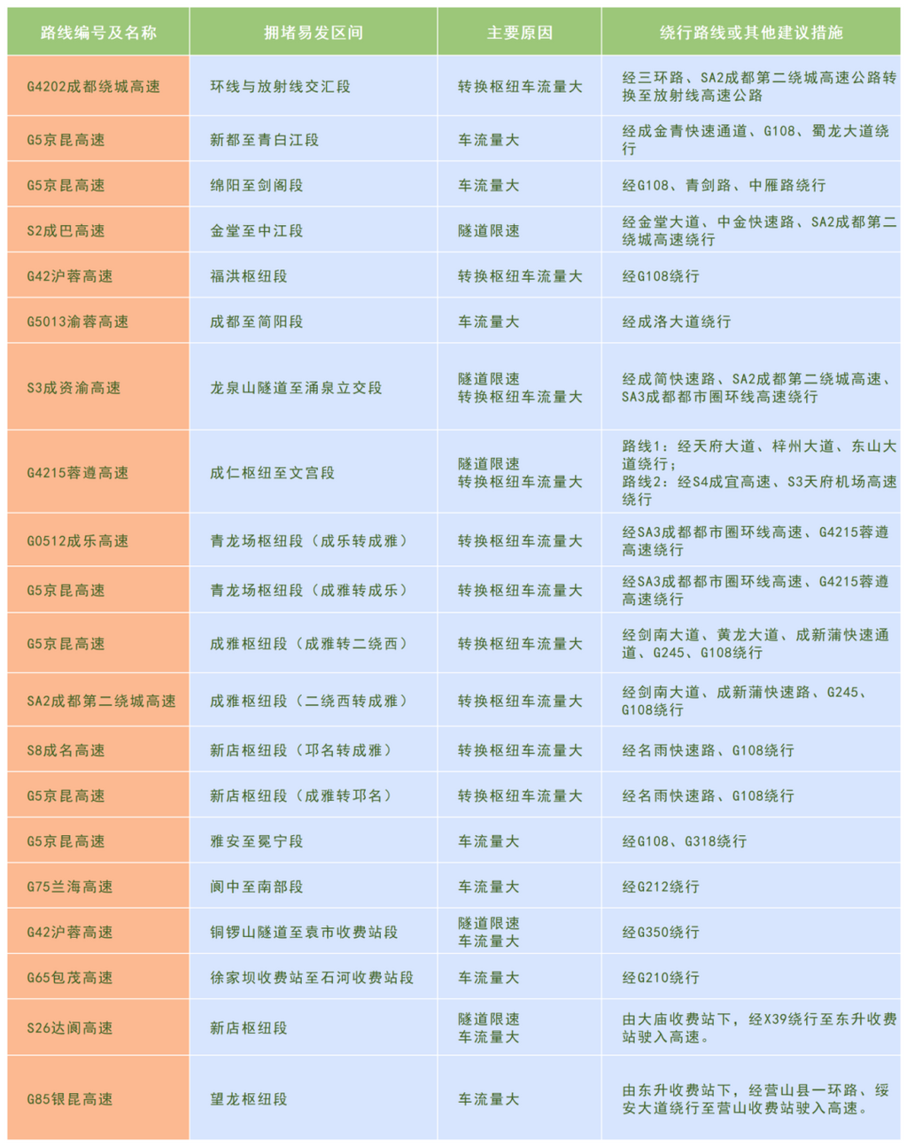 高速公路拥堵易发路段