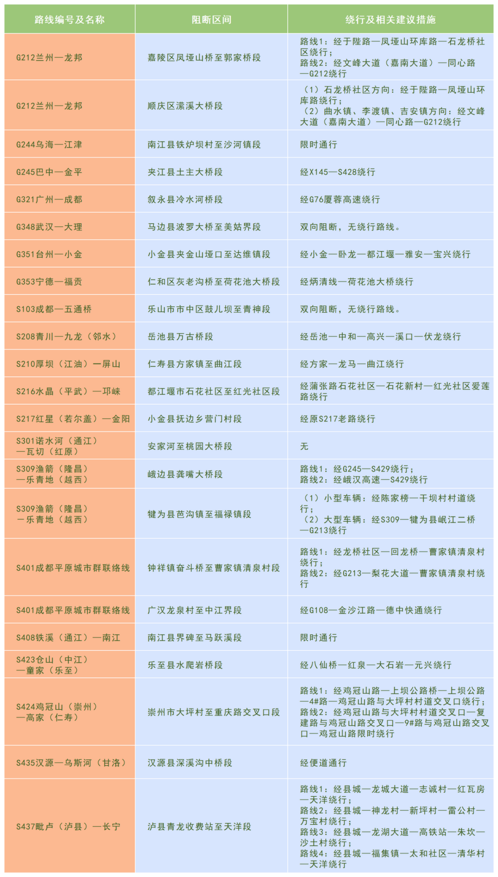 普通国省干线影响通行的